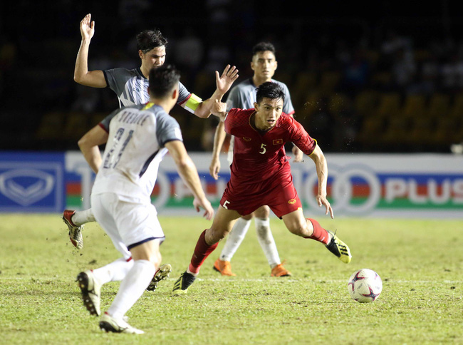 Văn Hậu và hàng thủ đã xuay sở tốt trong trận đấu với Philippines ở lượt đi. Ảnh: Anh Khoa