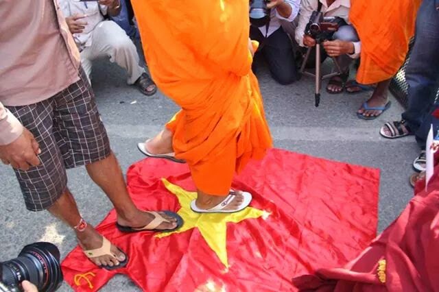 Dẫm lên cờ Việt Cộng để biểu hiện lòng yêu Campuchia