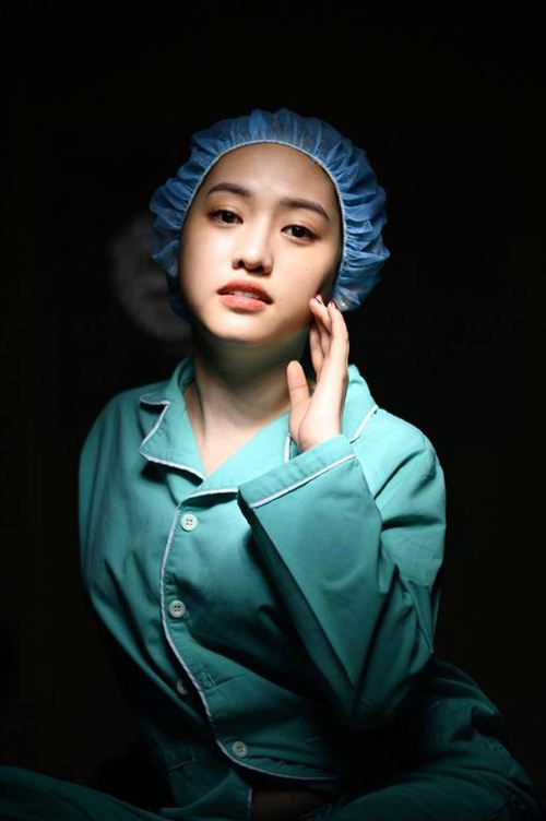 Thúy Vi trước khi lên bàn mổ phẫu thuật hút mỡ.
