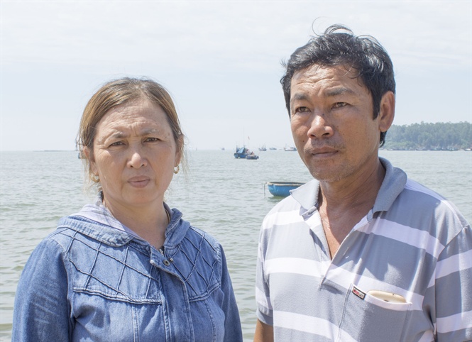 Ngư dân Nguyễn Dê và vợ (mẹ ruột thuyền trưởng Vũ) thẫn thờ vì mất tài sàn