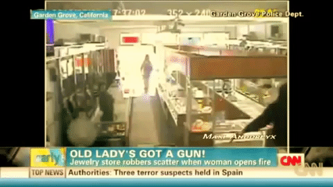 Được biết, người phụ nữ đã 65 tuổi và là chủ cửa cửa hiệu trang sức. Vì lo sợ tính mạng của bản thân và các khách hàng có thể bị đe dọa nên bà phải hành động thật nhanh. Tuy nhiên, bà từ chối bình luận về hành động anh hùng của mình.
