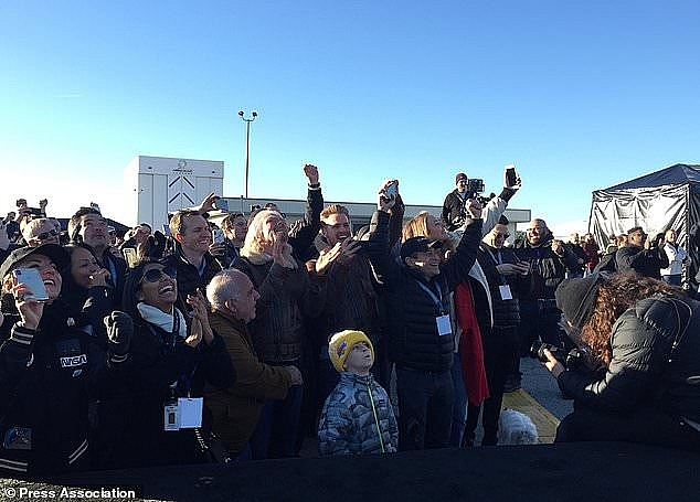 Đám đông chào mừng vụ phóng tàu vũ trụ thành công tại trung tâm thử nghiệm Mojave, bang California, Mỹ. (Ảnh: PA)