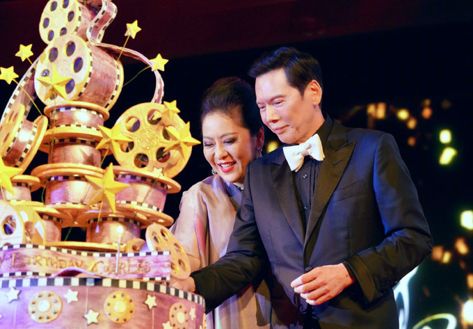 Vợ chồng Lưu Thanh Vân- Quách Ái Minh sánh đôi dự tiệc.