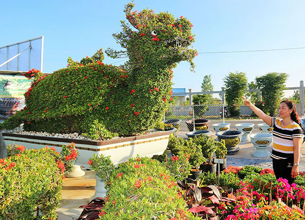 Mọi người đang sốt rần rần với vườn kiểng thú lớn bậc nhất đất Tây Đô. Những con thú như rồng, cá sấu, kỳ lân, trâu…được tạo hình từ cây bông trang ở vườn kiểng Văn Trường, nằm ven quốc lộ 91B, phường Thới An Đông, quận Bình Thủy. Đây quả là những tác phẩm này rất tinh xảo dù kích thước lớn, nên khiến du khách thích thú.