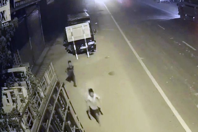 Hình ảnh hai tên trộm nhí bỏ chạy sau khi gây tai nạn. (Ảnh cắt từ clip)