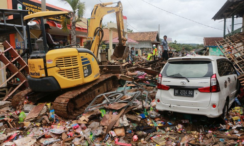 Lực lượng cứu hộ đang dùng máy xúc và nhiều thiết bị cơ giới để đào bới những đống đổ nát trong điều kiện mưa lớn. Họ phải chạy đua với thời gian để tìm người sống sót trước khi quá muộn. Hàng nghìn người cũng được sơ tán khỏi khu vực bị ảnh hưởng trên đảo Java và Sumatra của Indonesia.