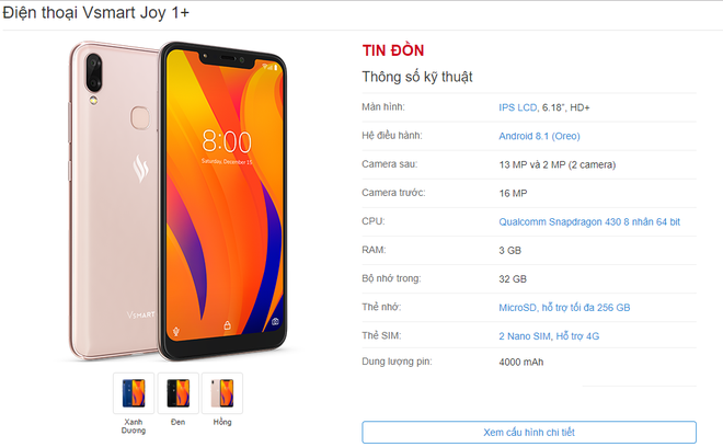 Hôm nay, trên trang web của các nhà bán lẻ điện thoại di động lớn ở Việt Nam, hình ảnh điện thọai VSmart đã được đăng tải rầm rộ. Ngoài hình chụp màu sắc mặt lưng, mặt trước và màn hình chính, các trang này cũng tiết lộ gần như đầu đủ cấu hình và các chi tiết quan trọng trong 4 sản phẩm này.