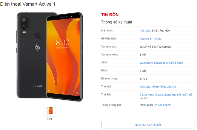 Old  Default Lộ diện cấu hình "dế khủng" của Vingroup có thể "đập chết" iphone