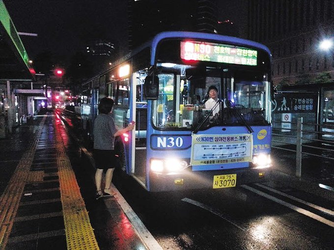 Hệ thống xe buýt đêm của Seoul hoạt động từ năm 2013, chạy từ nửa đêm đến 5h sáng với giá vé 2.000 won (hơn 40.000 đồng).