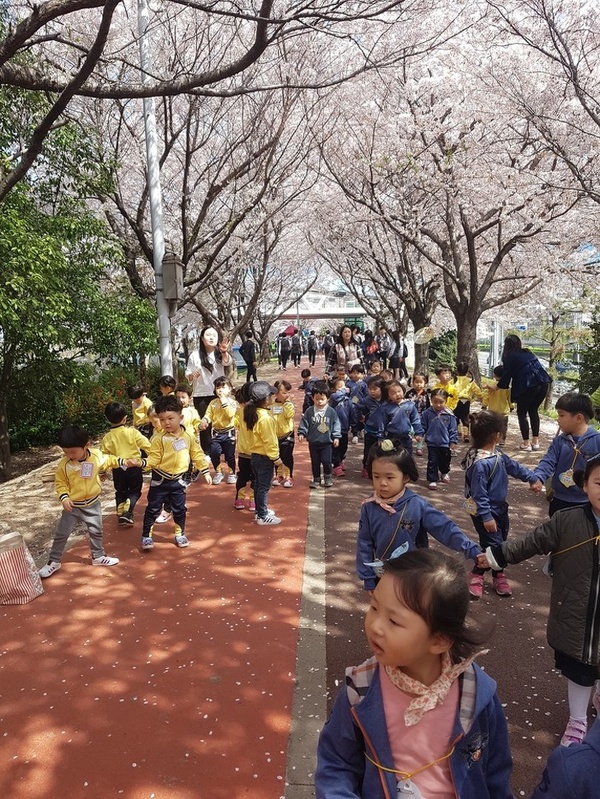 Khác với mẫu đồng phục có phần nghiêm túc như người lớn của học sinh phương Tây, đồng phục của các trường mầm non Hàn Quốc có màu đặc trưng. Nhờ vậy, các thầy cô dàng nhận diện và trông coi các em nhỏ, đặc biệt khi đi tham quan. Ảnh: AdaKwon.