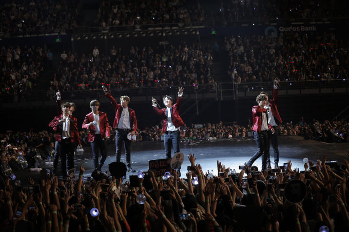 Giới trẻ xứ Hàn thường không theo dõi xu hướng của thị trường âm nhạc Mỹ và Anh mà quan tâm tới các ca sĩ, nhóm nhạc nổi trong làng Kpop. Hiện BTS (ảnh) là một trong những nhóm nhạc nổi danh nhất tại Hàn Quốc, và tạo tiếng vang trên thị trường âm nhạc quốc tế. Ảnh: Hello Asia.