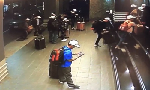 Đoàn khách Việt Nam xuất hiện chớp nhoáng trong một khách sạn ở Cao Hùng ngày 23/12 trước khi biến mất. Ảnh: CNA.
