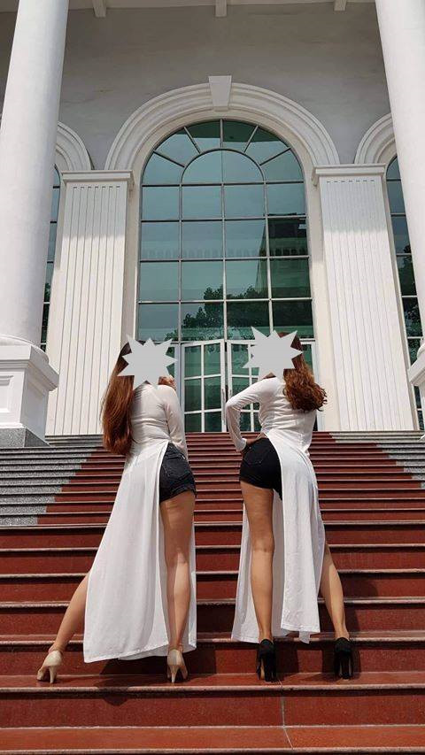Mặc áo dài với quần đùi, chụp phản cảm, không hiểu hai cô gái nghĩ gì