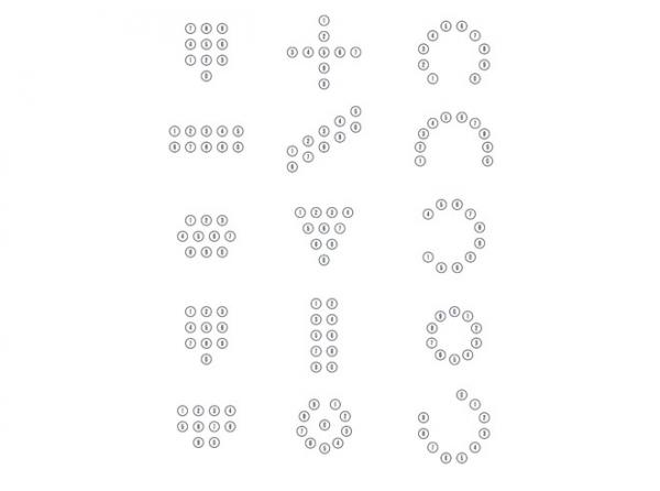 Mỗi số trên bàn phím này tương đương với một chữ số của số hạng. Ví dụ số 9, cột thứ 4 tương đương số 9 trong 9000. Số 0 không xuất hiện trong bàn phím này, bởi để biểu diễn số 0 người làm tính đơn giản là không cần bấm nút nào cả.