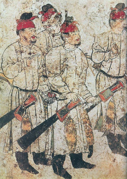 Hình ảnh của những người đàn ông trên bức tranh tường trong ngôi mộ của Đường Trung Tông, con trai bị phế truất và bị lưu đày bởi chính Võ Hậu. Ảnh: Ancient Origins.