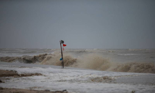 Cờ đỏ cảnh báo nguy hiểm tại một bãi biển khi bão Pabuk đổ bộ tỉnh Nakhon Si Thammarat, Thái Lan hôm qua. Ảnh: Reuters.