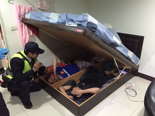 Sau khi kiểm tra, mặc dù người đàn ông mở cửa có visa đến Đài Loan, nhưng phía cảnh sát lại phát hiện thêm một chiếc giường khả nghi khác trong căn phòng. Khi nâng đệm giường lên thì tìm thấy 3 đối tượng khác ở bên dưới, bị nghi là lao động trốn sang Đài Loan bất hợp pháp.