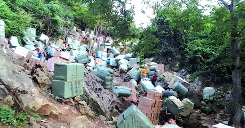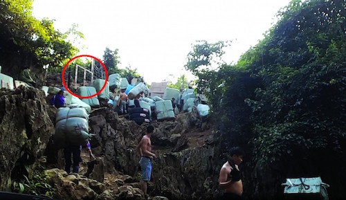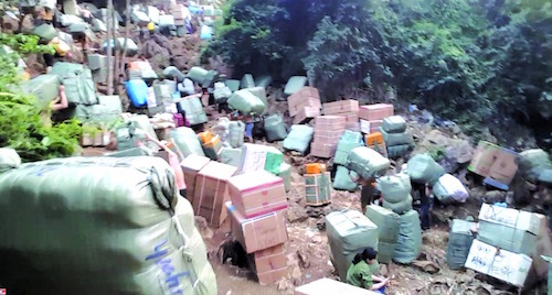 Trong suốt những ngày có mặt ở các kho hàng giáp biên, chúng tôi thấy được hàng vừa vào kho sẽ được vác ngay ra phía đồi (hướng về Việt Nam) sau khi làm thủ tục ở trạm “BOT” của kho. Hàng trăm tấn hàng hóa cứ thế rồng rắn tập trung ngay cửa rào chắn của bộ đội biên pḥng Việt Nam và “chờ đợi”…