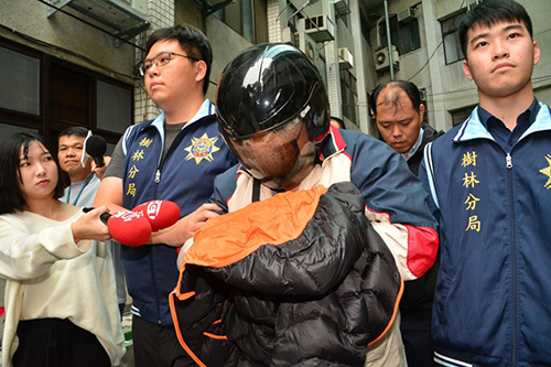 Nghi phạm Ting (giữa) bị cảnh sát Tân Bắc dẫn giải hôm 5/1. Ảnh: CNA
