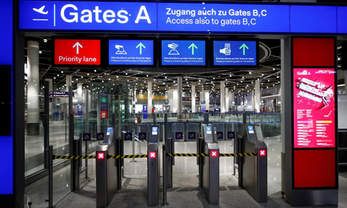 Một cổng tại sân bay Duesseldorf, Đức hôm nay vắng bóng nhân viên do cuộc đình công đòi tăng lương. Ảnh: Reuters.