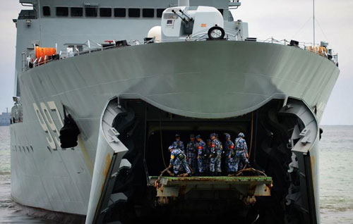 Binh sĩ Trung Quốc trong một cuộc diễn tập đổ bộ. Ảnh: ECNS.