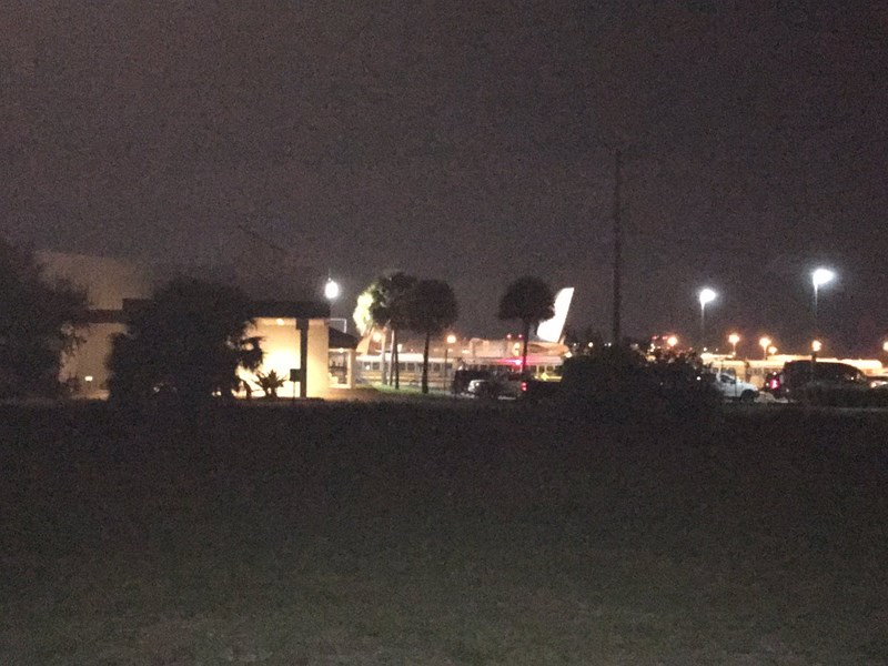 Một chiếc máy bay chính phủ được cho là chở Đệ nhất phu nhân Mỹ Melania Trump hạ cánh tại sân bay quốc tế Palm Beach ở bang Florida (Mỹ) chiều 17-1. Ảnh: TWITTER