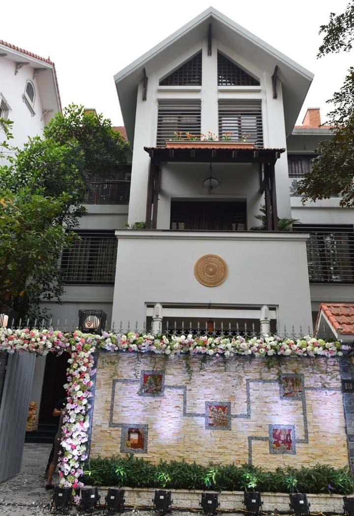 Nhìn từ ngoài vào, nhà của vợ chồng hoa hậu Thu Ngân khá tương tự với những căn nhà bên cạnh,chúng đều là những ngôi nhà cao tầng và bề thế