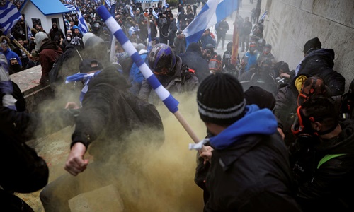Cảnh sát Hy Lạp hôm qua bắn hơi cay để giải tán hàng chục nghìn người biểu tình bên ngoài tòa nhà quốc hội nhằm phản đối cuộc bỏ phiếu dự kiến diễn ra trong tuần này về việc phê chuẩn thỏa thuận đổi tên nước ký với Macedonia . Theo đó, Macedonia sẽ đổi tên thành Cộng hòa Bắc Macedonia, Reuters đưa tin.