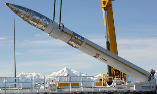 Quả đạn GBI được đưa vào hầm phóng tại bang Alaska. Ảnh: MDA.