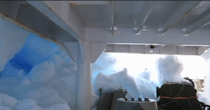 Khoảng 250 tấn tuyết đổ vào phía trước mũi tàu. (Ảnh: openpaper.com)