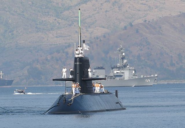 Tàu ngầm và tàu khu trục Nhật trong một chuyến thăm cảng Subic hồi năm 2016. Ảnh: AFP