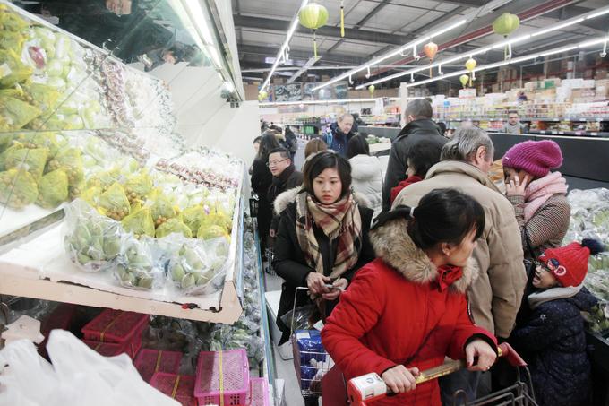 Giữa cái giá rét 0 độ C, trung tâm thương mại Đồng Xuân ở Berlin vẫn tấp nập người đến mua sắm chuẩn bị đón Tết Kỷ Hợi.