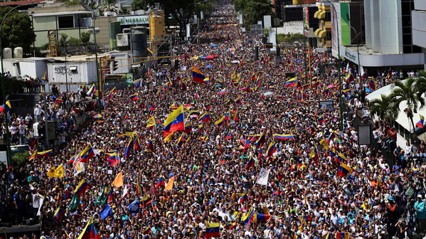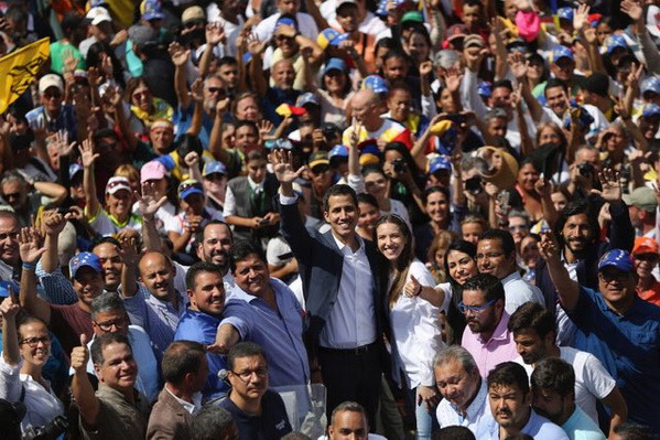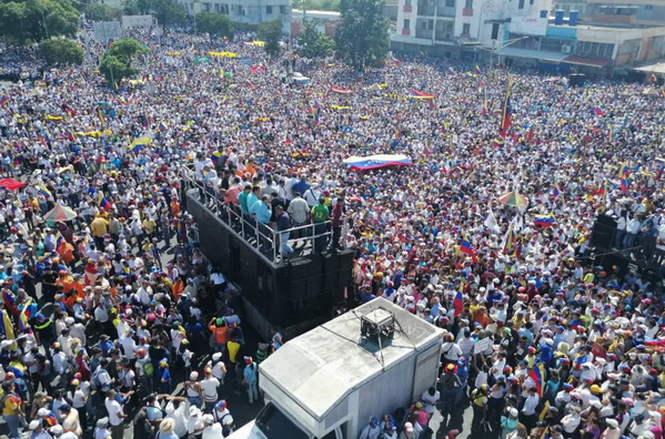 Ảnh số người ủng hộ độc tài chỉ là một nhúm và người ủng hộ dân chủ rất đông, ngày 2-2-2019 tại thủ đô Caracas, Venezuela.