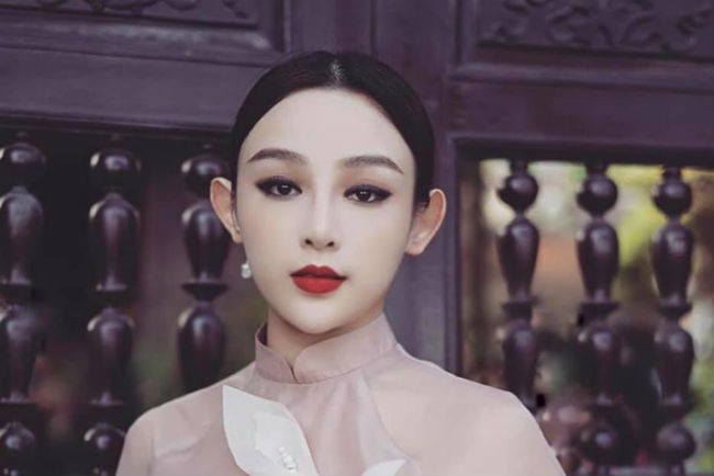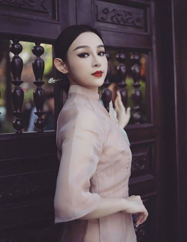 Một phần vì diện áo dài truyền thống nhưng lại để kiểu trang điểm đậm, thiếu tự nhiên đã khiến cho tổng thể thiếu hài hòa.