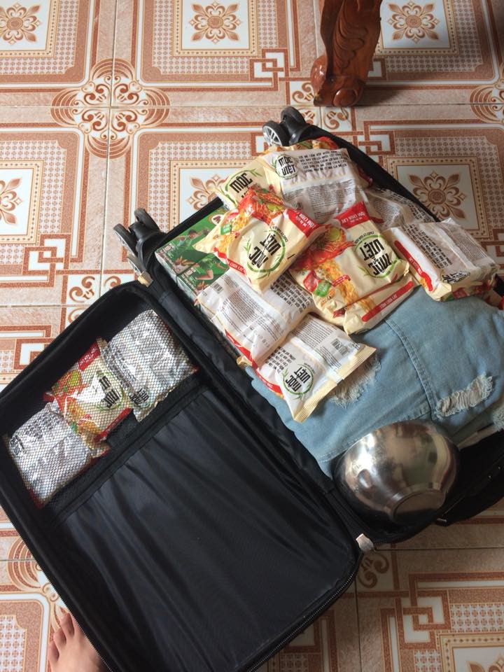 Mỳ tôm - món ăn chống đói của các bạn trẻ cũng phải là mang từ nhà đi mới chịu.