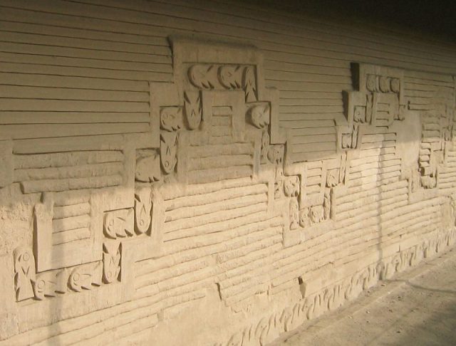 ​​​​​​​Các nét điêu khắc cầu kỳ miêu tả cánh đánh bắt cá trên bức tường tại thành phố Chan Chan – thủ phủ vương quốc Chimor.