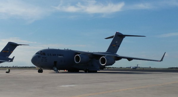 Vietbf.com 3 máy bay C17 của quân đội Mỹ trên đường tới Venezuela. 3 chiếc C-17 của USAF chở đầy viện trợ nhân đạo vừa rời Homestead AFB ở Miami trên đường đến sân bay Cúcuta. Từ đây có thể họ sẽ bay vào không phận Venezuela để thả hàng nhân đạo hay không? Hiện chưa rõ,một quan chức USAF cho biết "không vận" sẽ được cân nhắc.