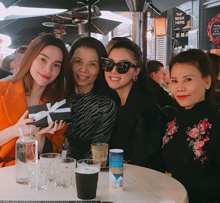 Ca sĩ Hồ Ngọc Hà cũng nhờ đến Tiên Paris tư vấn về trang phục. Trong ảnh, ca sĩ Hồ Ngọc Hà cùng mẹ, dì ruột hội ngộ Tiên Paris bên nước ngoài.