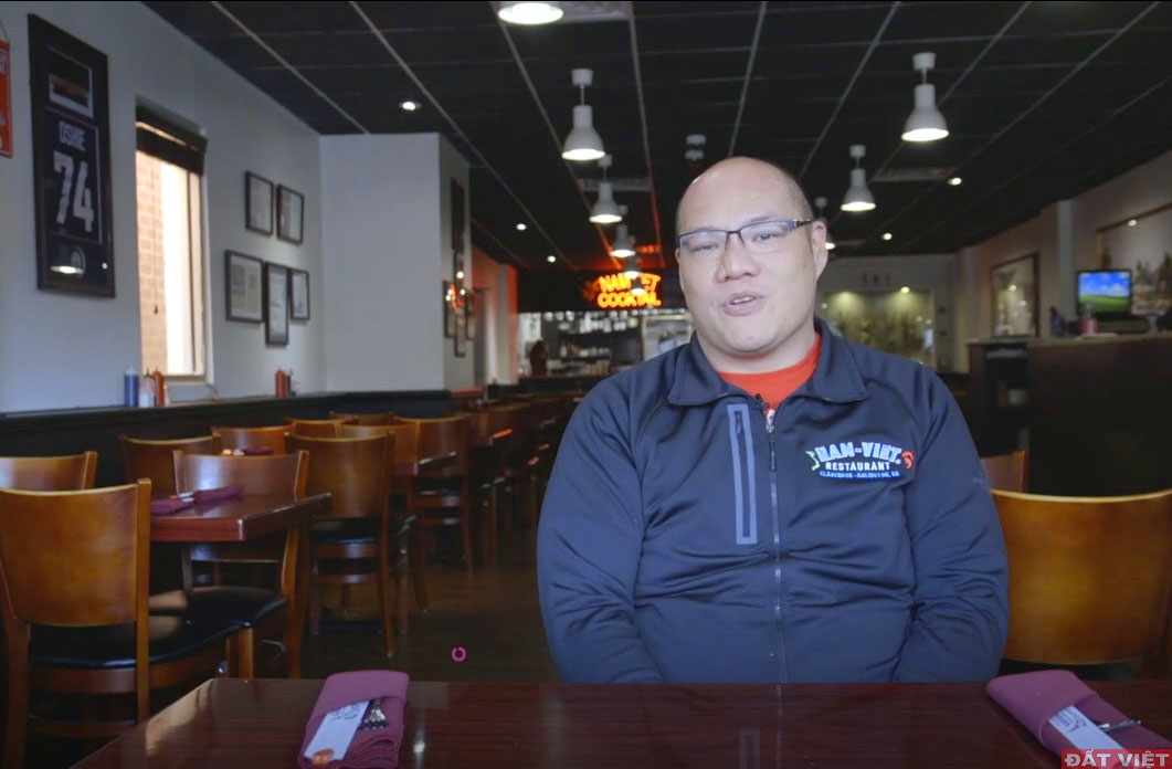 Anh Richard Nguyễn đang nói chuyện với đài truyền hình bên trong tiệm phở Nam Việt. (WUSA 9)