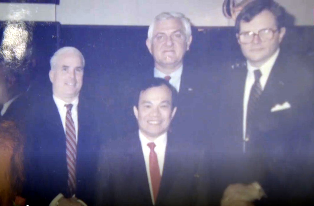 Trong hình lưu niệm không rõ ngày, ông Nguyễn Văn Thới (giữa) chụp chung với các cựu tù bình Hoa Kỳ, trong đó có ông John McCain (bên trái). (WUSA 9)