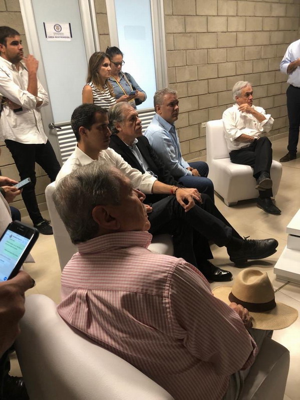 Hiện ông Guaido đang có mặt ở Colombia. Những khoảnh khắc trước, Tổng thống Juan Guaido đang gặp Bộ trưởng Quốc phòng Colombia xác định chi tiết về việc thông qua viện trợ nhân đạo cho Venezuela từ Cúcuta ở Colombia 23Feb2019.