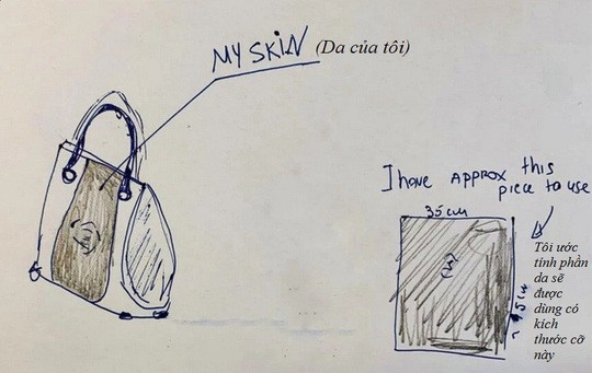 Nó sẽ có dây đeo ngắn và phần giữa một mặt của túi sẽ làm từ da của tôi, phần còn lại sẽ được làm từ những vật liệu khác".