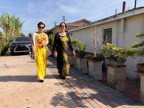 Bằng Kiều khoe ảnh mẹ ruột và mẹ vợ cũ diện áo dài, cùng đi dạo trong khuôn viên vườn nhà khi xuân về. Ngoài trồng nhiều cây bonsai, ông bố ba con còn có hứng thú trồng nhiều loại cây trái, hoa trong vườn từ táo Mỹ tới táo ta, hồng xiêm, bưởi, susu, mướp đắng….