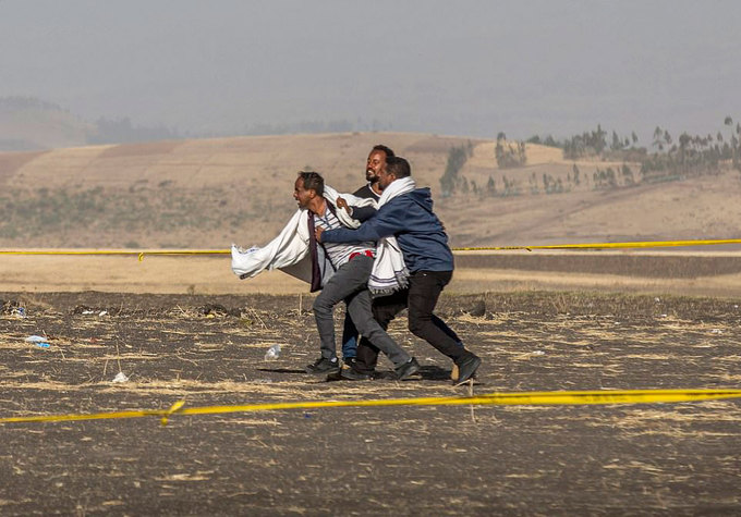 Vụ máy bay Boeing 737 Max 8 bị rơi gần sân bay Addis Ababa, Ethiopia, sau 6 phút cất cánh, khiến toàn bộ những người có mặt trên chuyến máy bay Ethiopia đều thiệt mạng, không còn một ai sông sót, vì vậy những người thân và gia đình của nhiều nạn nhân đã đến nơi máy bay Ethiopia rơi để tưởng niệm và đặt hoa.