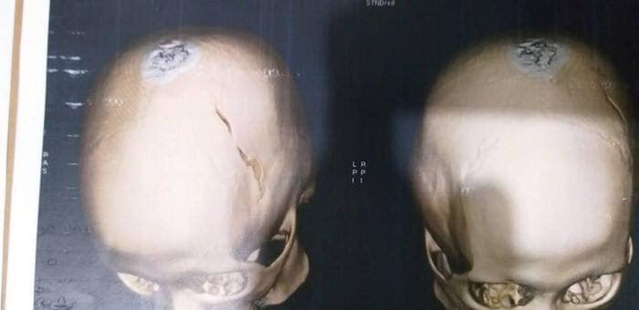 P/S: Hình nứt sọ của bé Linh do mẹ kế đập đầu em xuống sàn nhà.