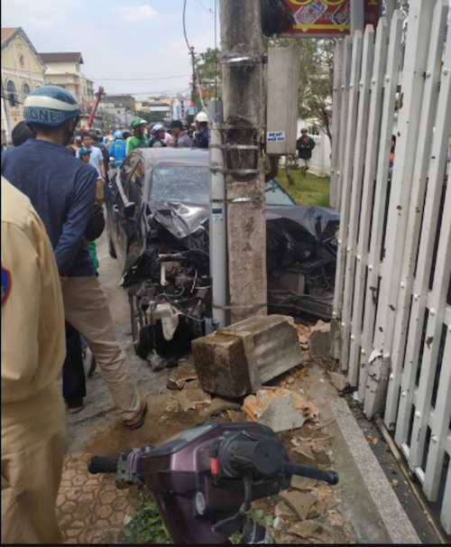 Trên đường 3/2 thuộc phường 1, TP Đà Lạt, Lâm Đồng. Thanh niên lái ô tô tông hàng loạt xe máy. Xe ô tô tông liên hoàn và chỉ dừng lại khi tông vào trụ điện bên đường.