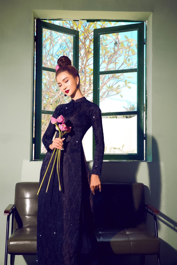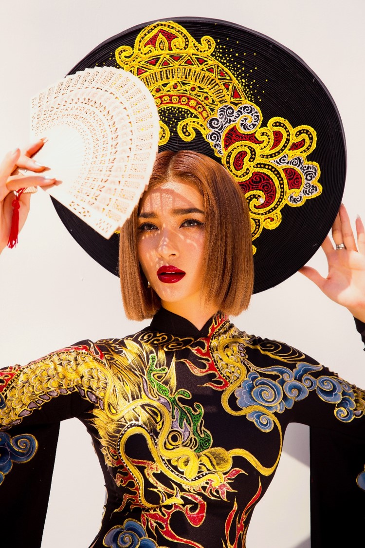Vốn rất yêu thích tà áo dài Việt, người đẹp thường xuyên diện áo dài trong các sự kiện đặc biệt. Trong lần này, sau khi quyết định "làm mới" bản thân với mái tóc ngắn cá tính, cô cũng ghi lại hình ảnh của mình trong trang phục truyền thống Việt.