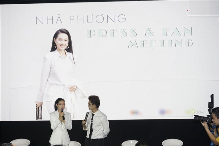 Nhã Phương trong buổi giao lưu cùng người hâm mộ vào báo chí vào chiều 27/3.