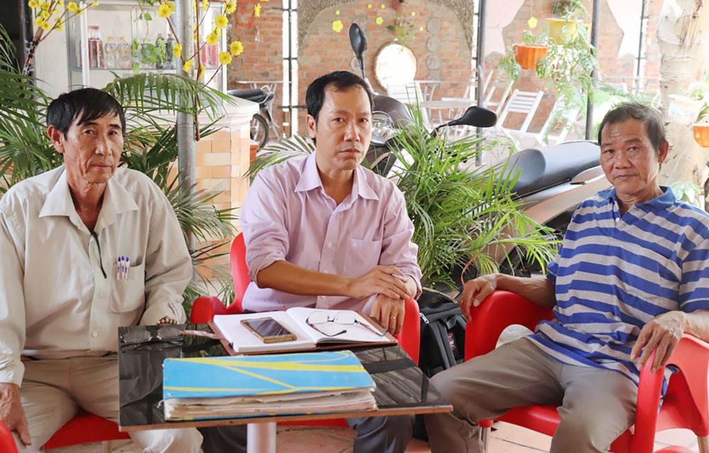 Trưởng thôn Bùi Văn Hòe (trái) và ông Lỷ Dòng Nhân, cha nạn nhân (phải) kể lại chuyện với phóng viên báo Thanh Niên sáng 29 Tháng Ba, 2019.
