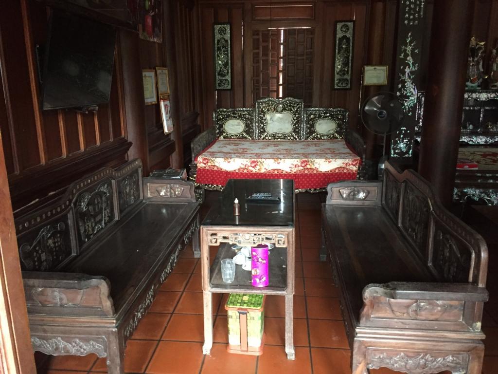 Hai gian hai bên hông của ngôi nhà ông Hạ đều kê một bộ bàn ghế làm bằng gỗ gụ để tiện cho việc đón, tiếp khách. “Ngôi nhà được thiết kế theo kiến trúc cổ nên gia đình rất ưng và thích. Ở trong ngôi nhà này mùa hè thoáng mát, còn mùa đông lại ấm”, ông Hạ nói.